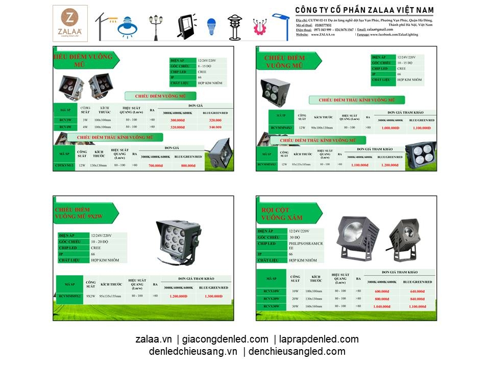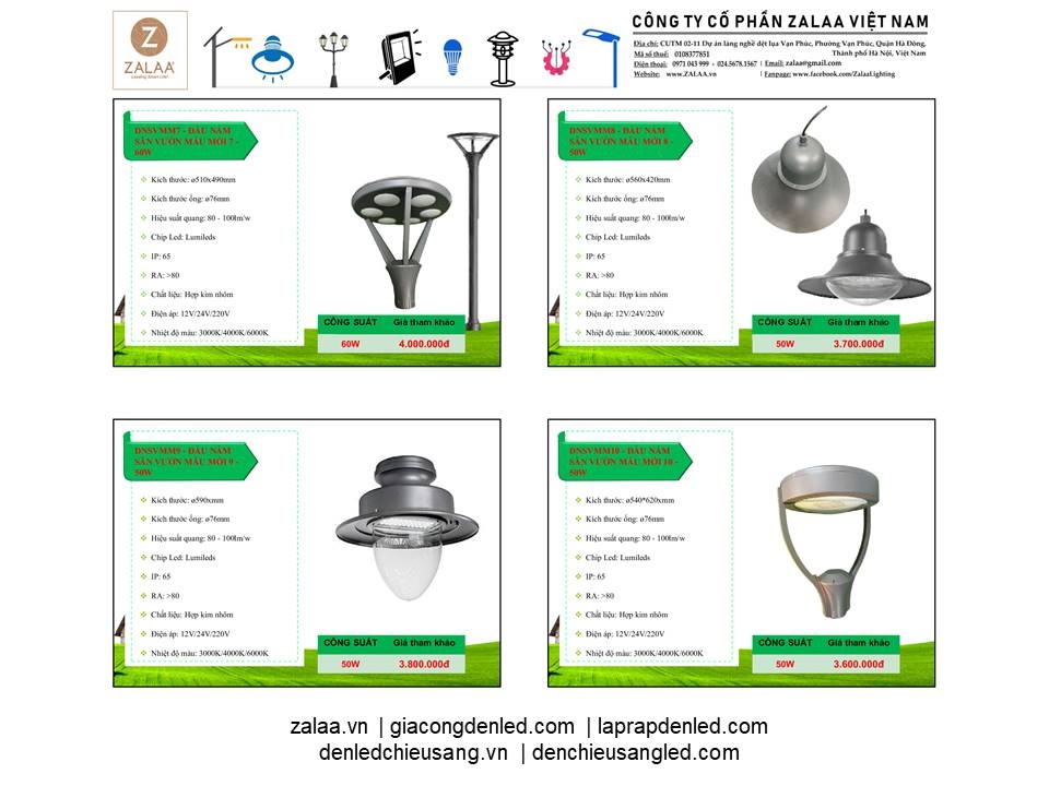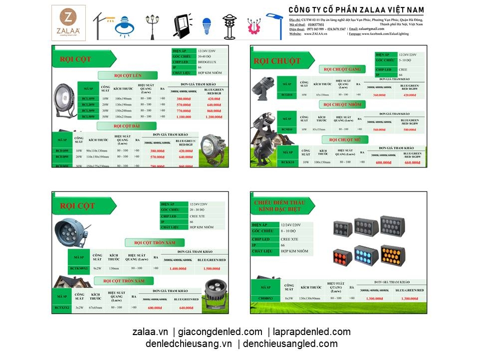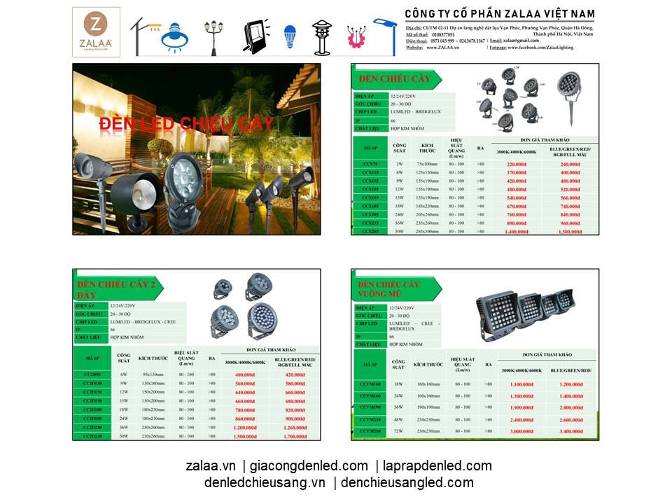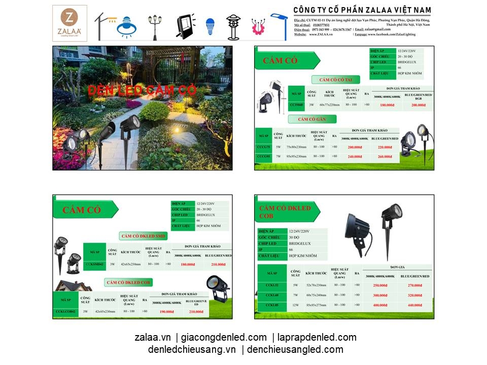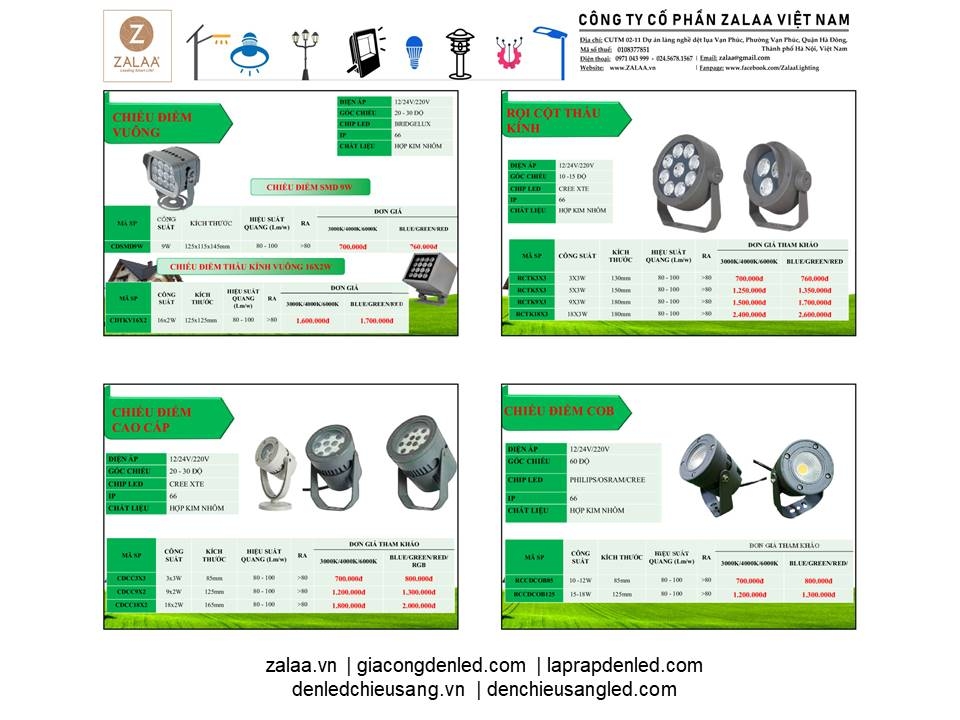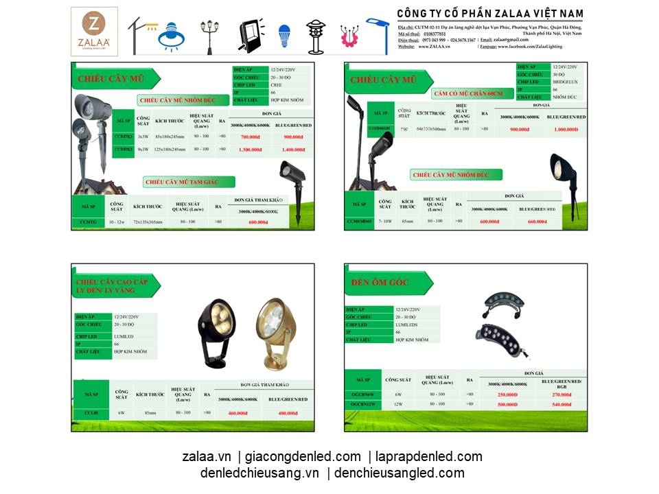 BẢNG BÁO GIÁ ĐÈN LED CẢNH QUAN SÂN VƯỜN ZALAA 2024