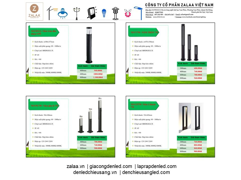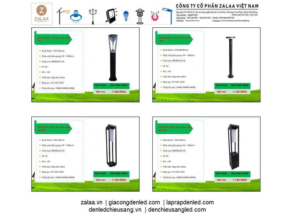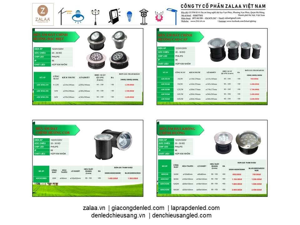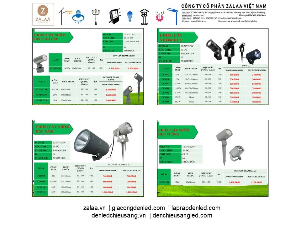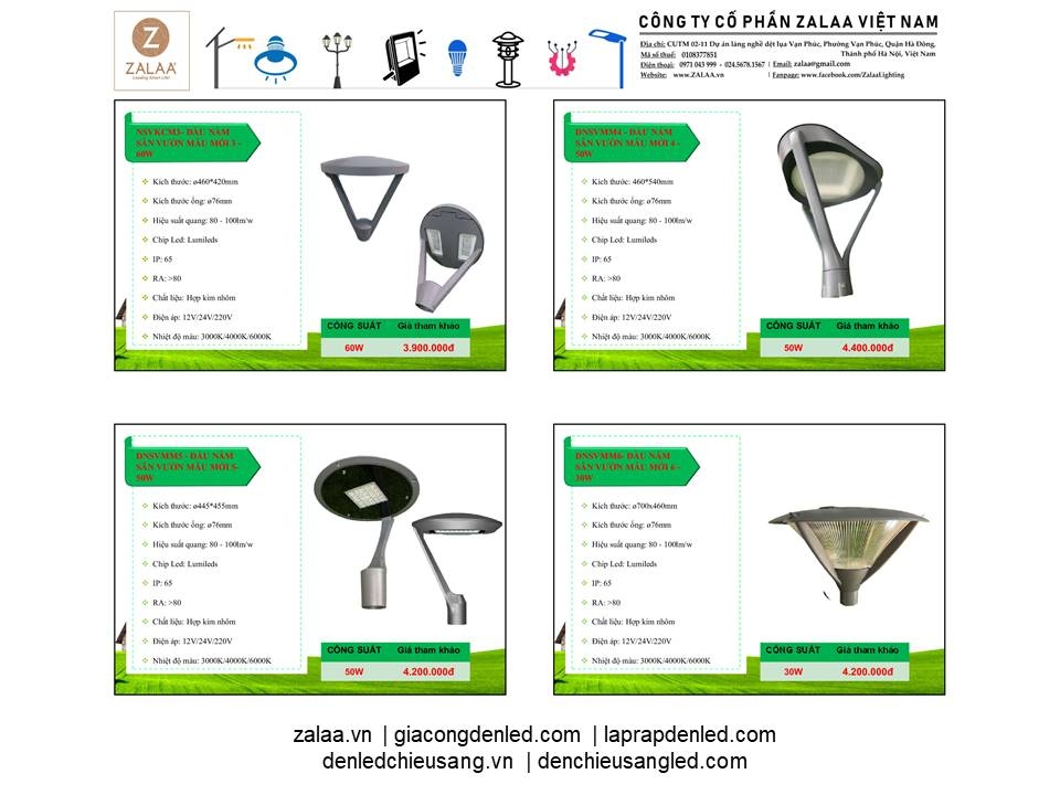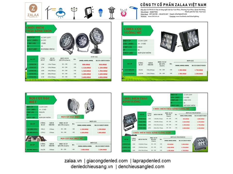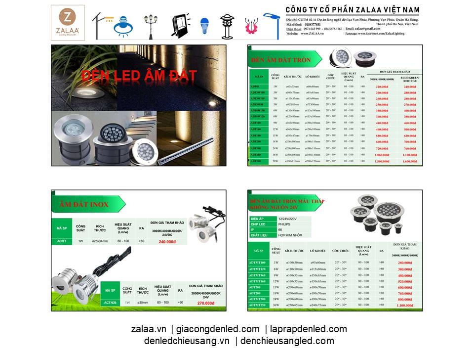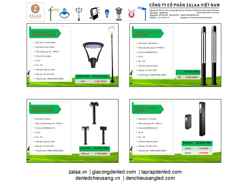 BẢNG BÁO GIÁ ĐÈN LED CẢNH QUAN SÂN VƯỜN ZALAA 2024