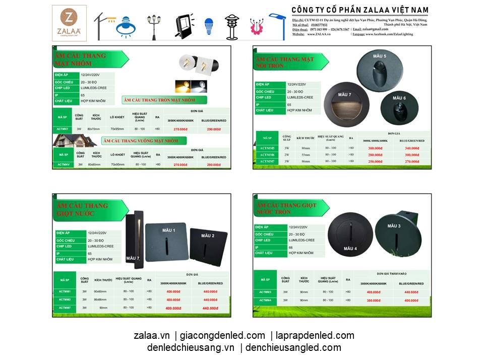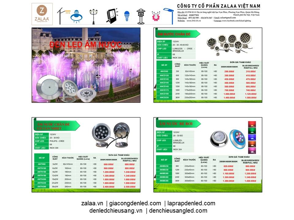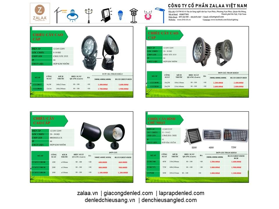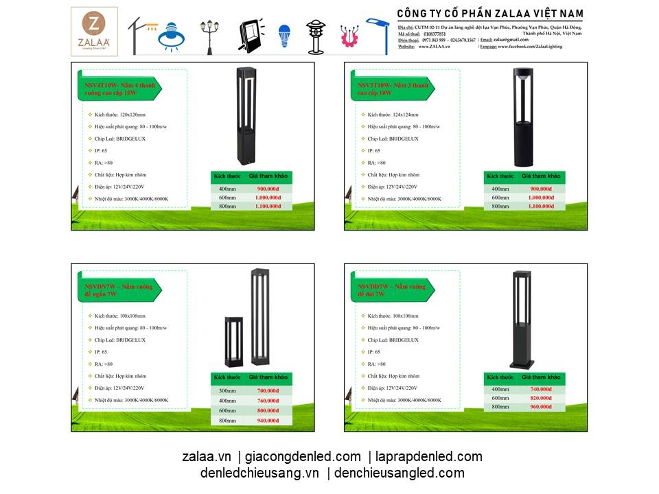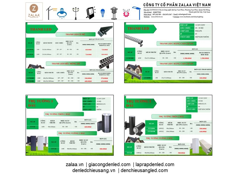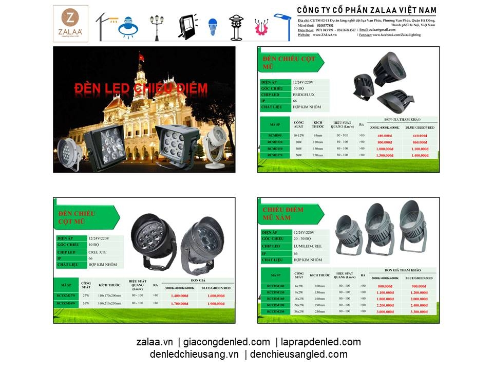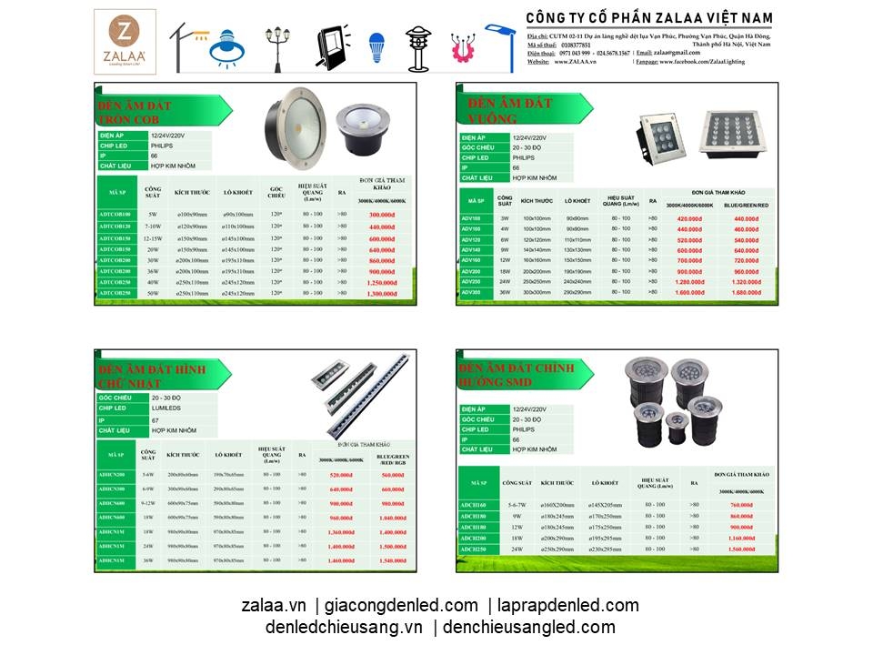 BẢNG BÁO GIÁ ĐÈN LED CẢNH QUAN SÂN VƯỜN ZALAA 2024