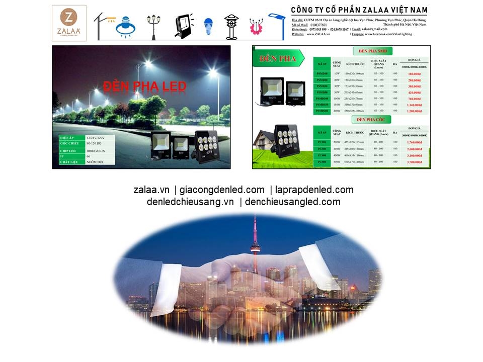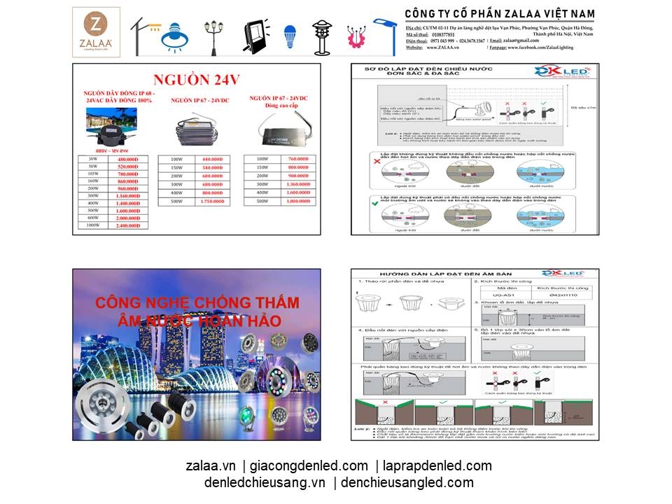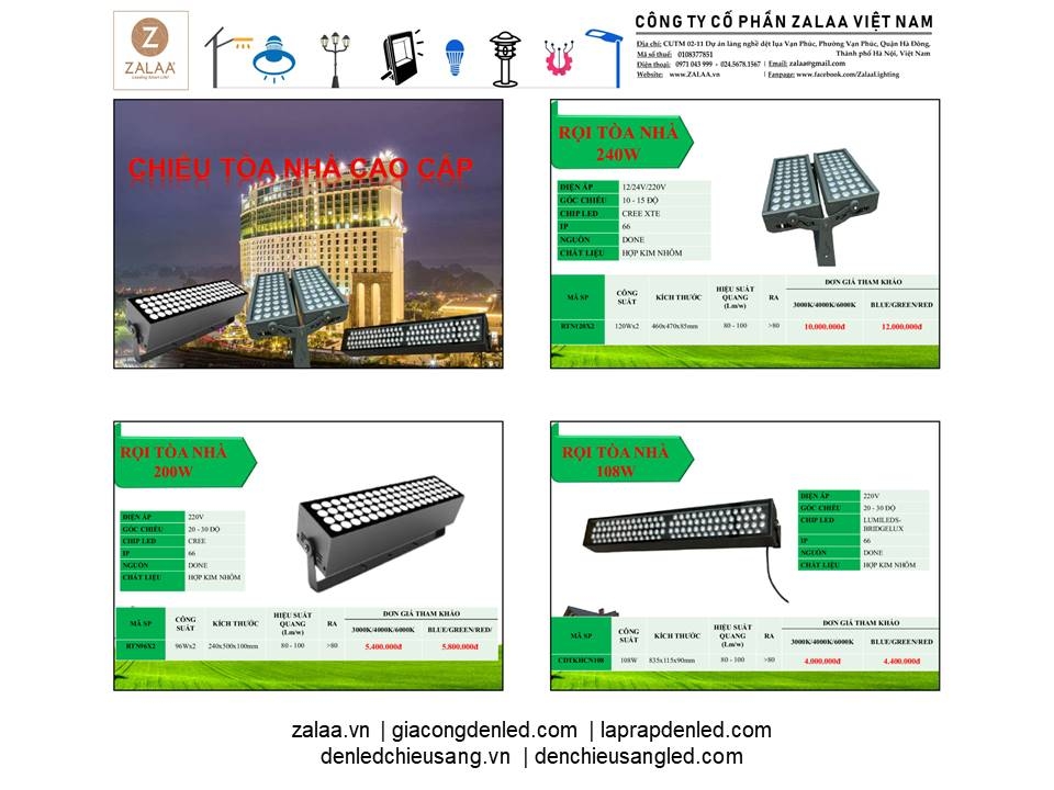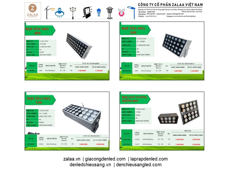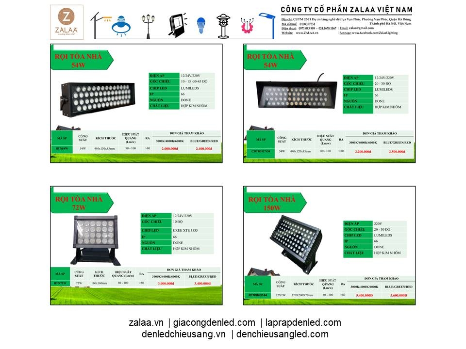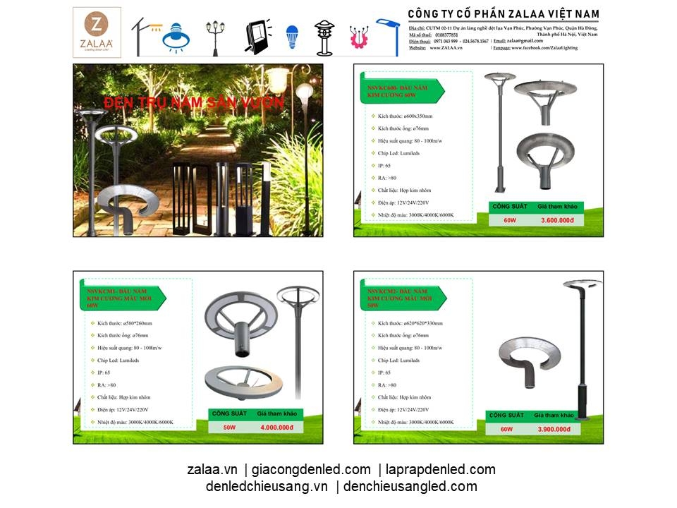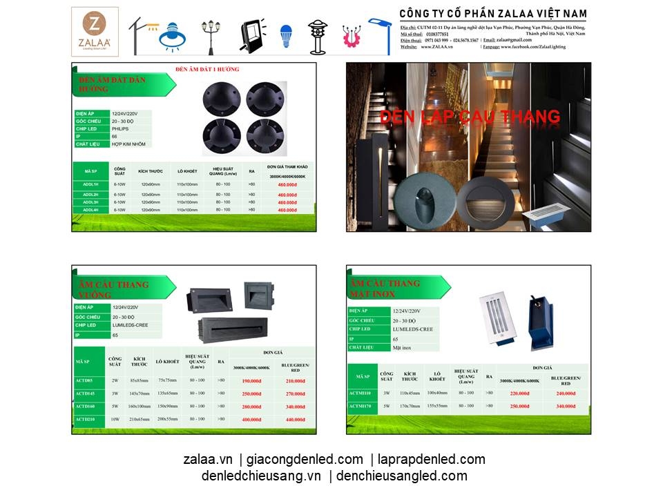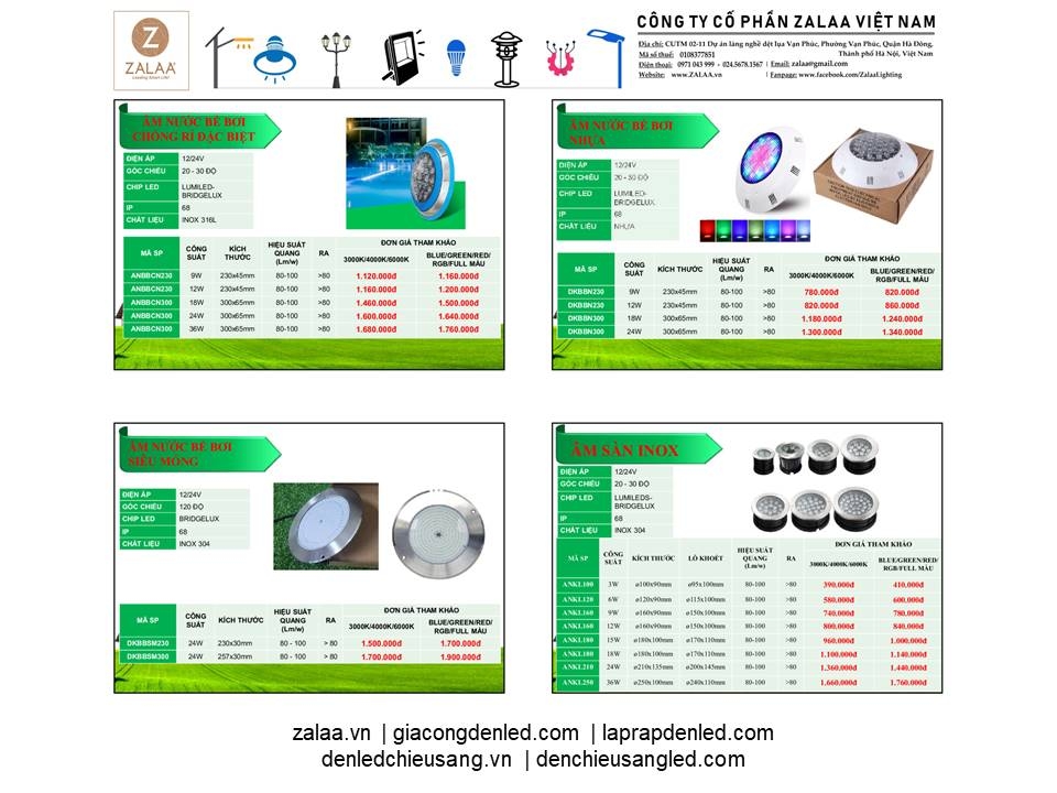 BẢNG BÁO GIÁ ĐÈN LED CẢNH QUAN SÂN VƯỜN ZALAA 2024