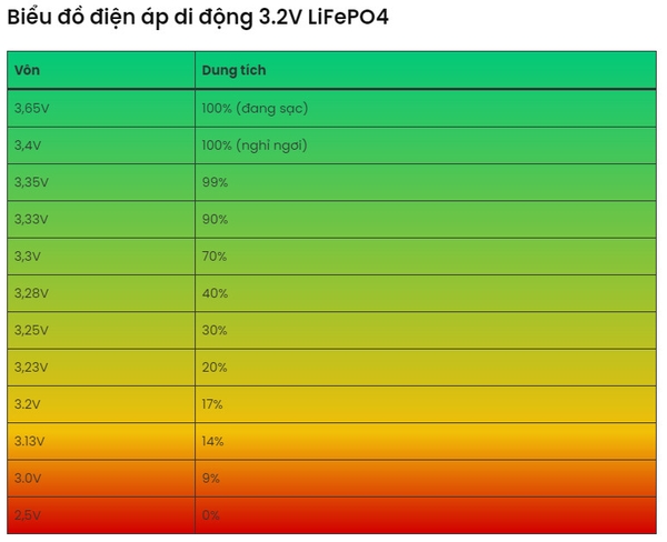 - Điện áp danh định: 3.2V, 12V, 12.8 V, 25.6V