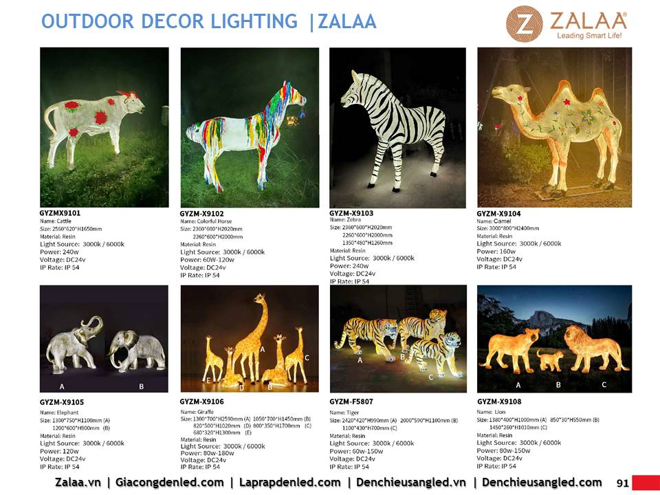 ZALAA Lighting giới thiệu các mẫu đèn led decor theo yêu cầu như con vật, thú rừng phát sáng,... sử dụng trang trí cảnh quan sân vườn, công viên, khuôn viên, biệt thự, homestay...