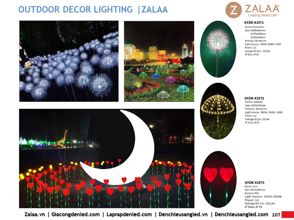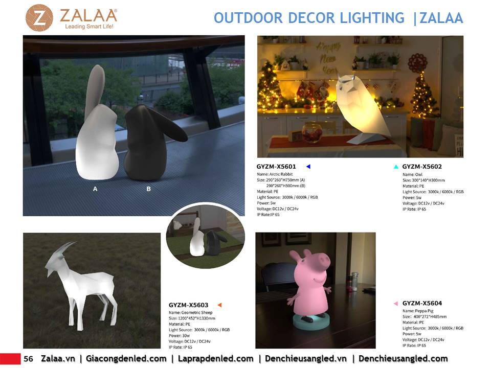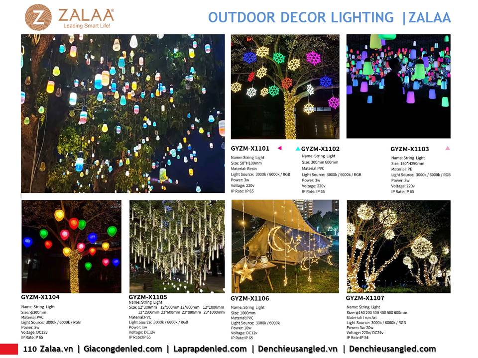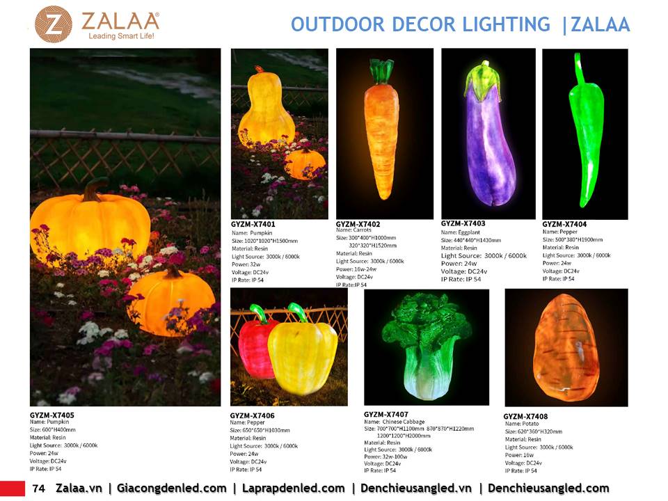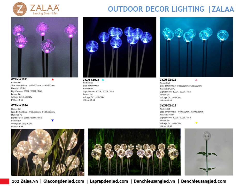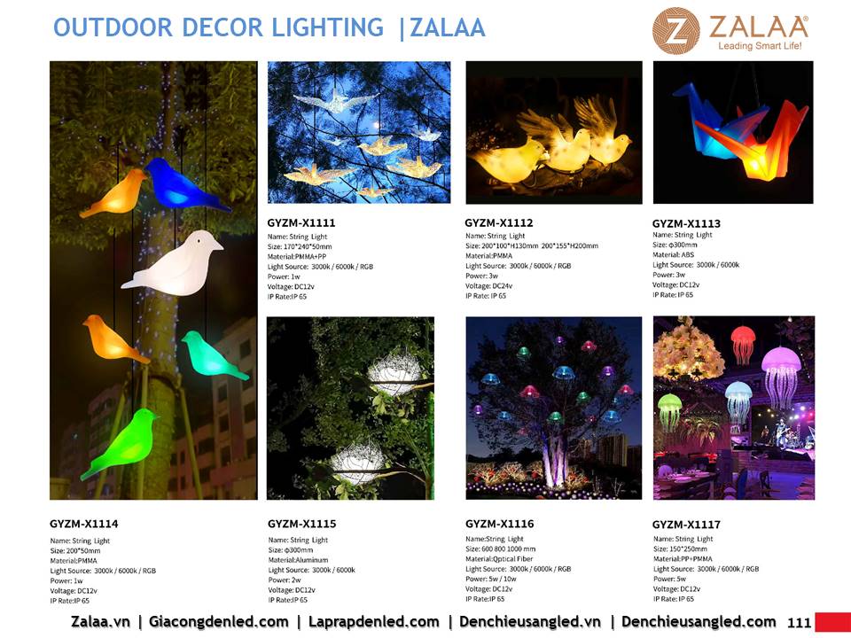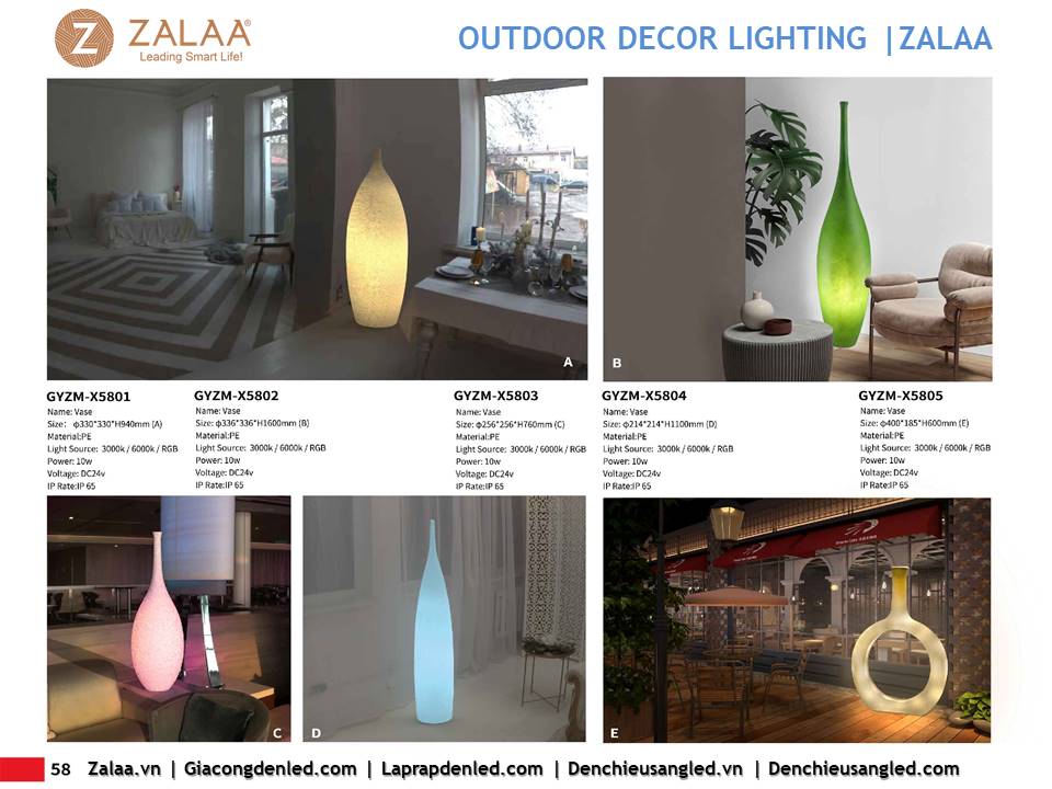 Hôm nay, ZALAA Lighting trân trọng giới thiệu Catalogue Đèn LED Decor Cảnh Quan Sân Vườn với hàng trăm mẫu thiết kế độc đáo sáng tạo theo yêu cầu, đem lại điểm nhấn rực rỡ cho mọi không gian ngoài trời: sân vườn, công viên, khuôn viên, biệt thự, homestay, resort...