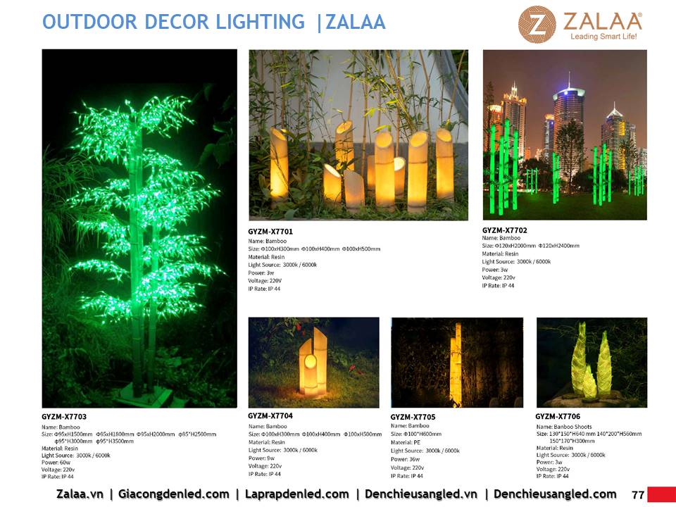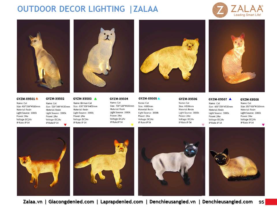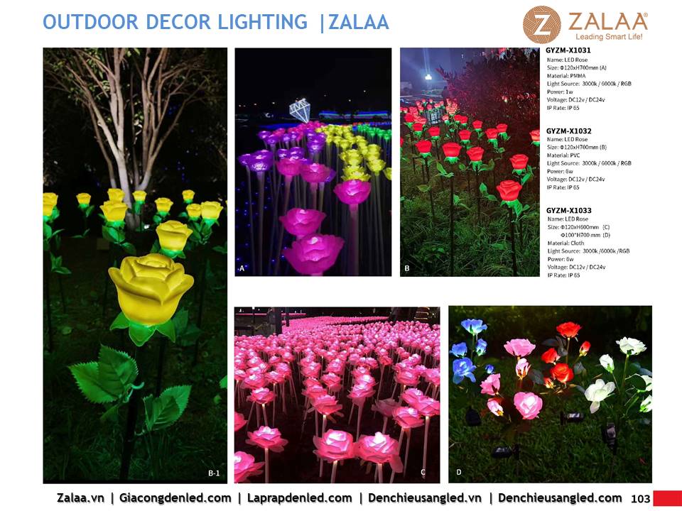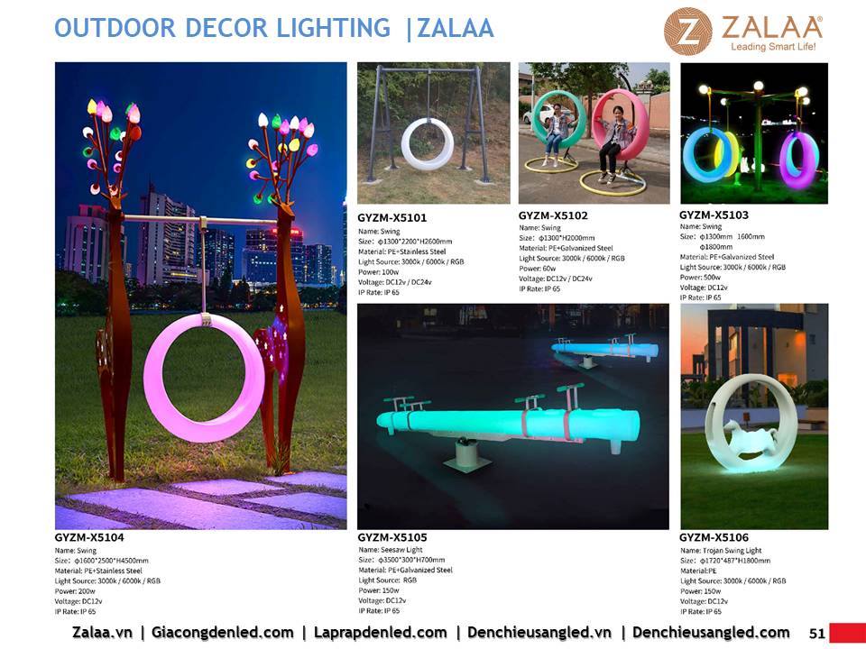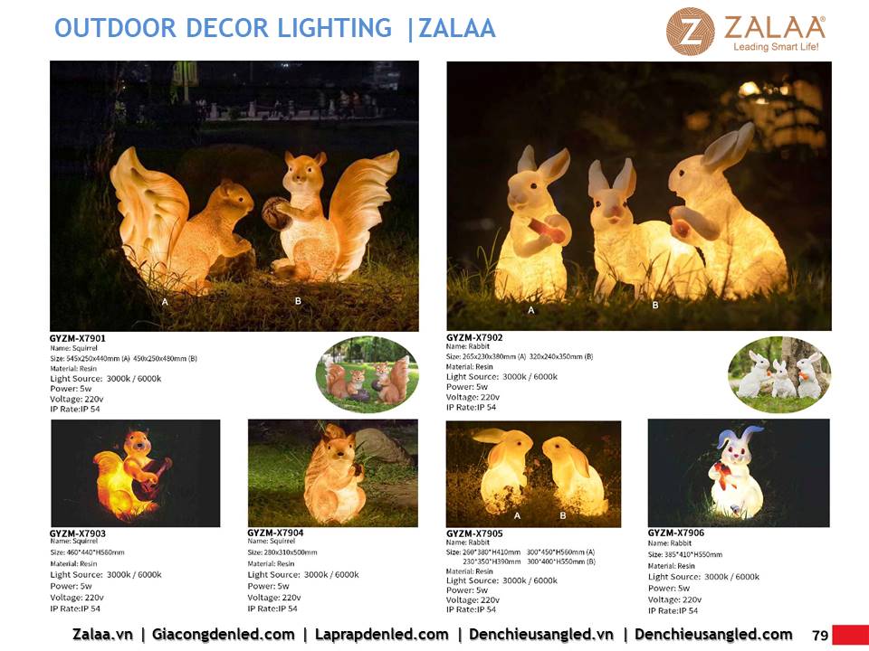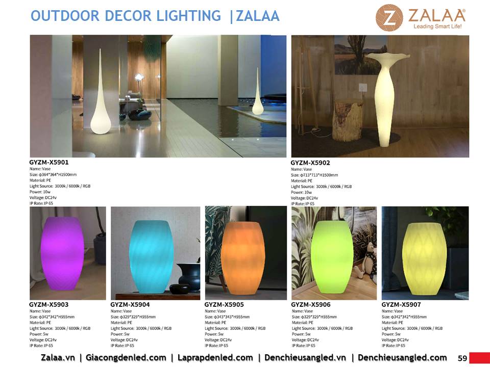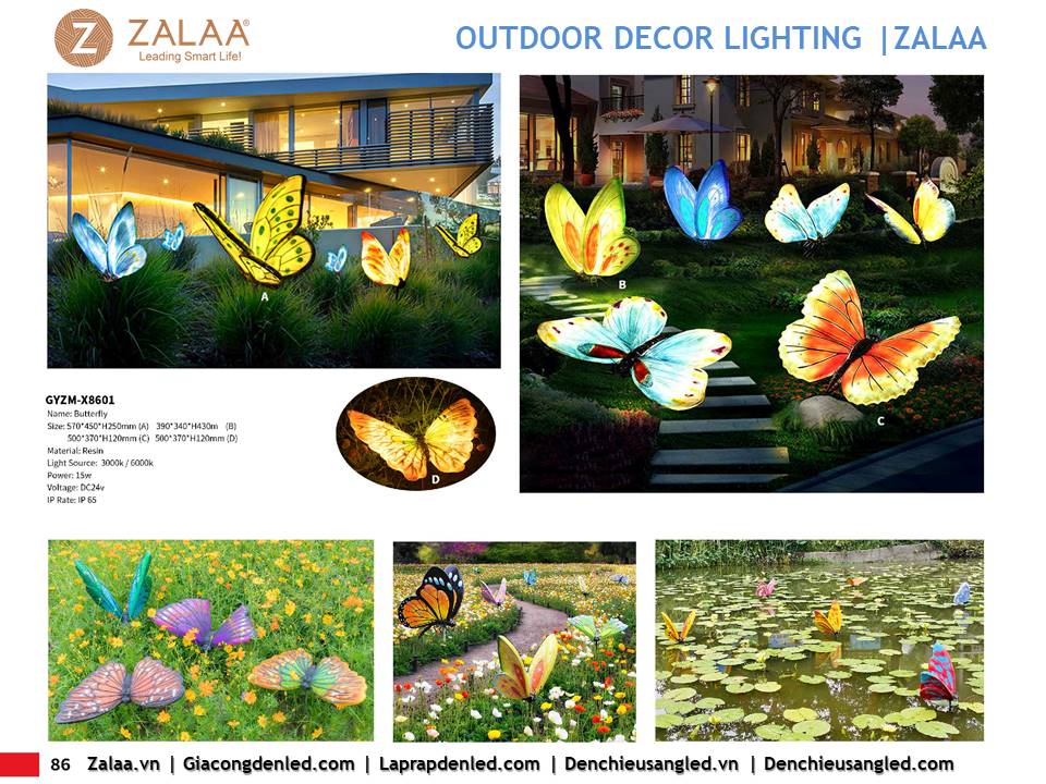Hôm nay, ZALAA Lighting trân trọng giới thiệu Catalogue Đèn LED Decor Cảnh Quan Sân Vườn với hàng trăm mẫu thiết kế độc đáo sáng tạo theo yêu cầu, đem lại điểm nhấn rực rỡ cho mọi không gian ngoài trời: sân vườn, công viên, khuôn viên, biệt thự, homestay, resort...