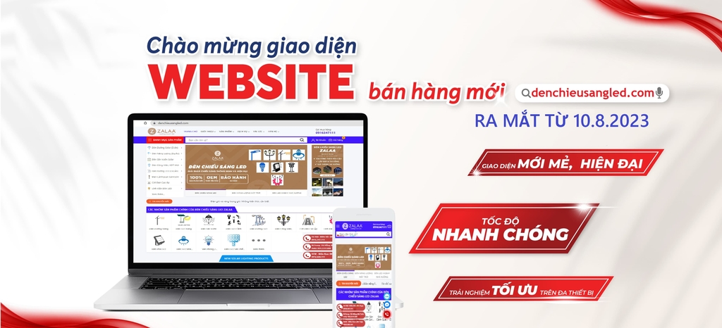 Vào ngày 10.8.2023 tới đây! Công ty Cổ Phần ZALAA Việt Nam ra mắt giao diện website bán hàng mới có tên miền www.denchieusangled.com.