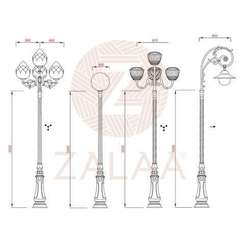 Trụ Đèn Sân Vườn cao 3.2M ZAT-1071 ZALAA