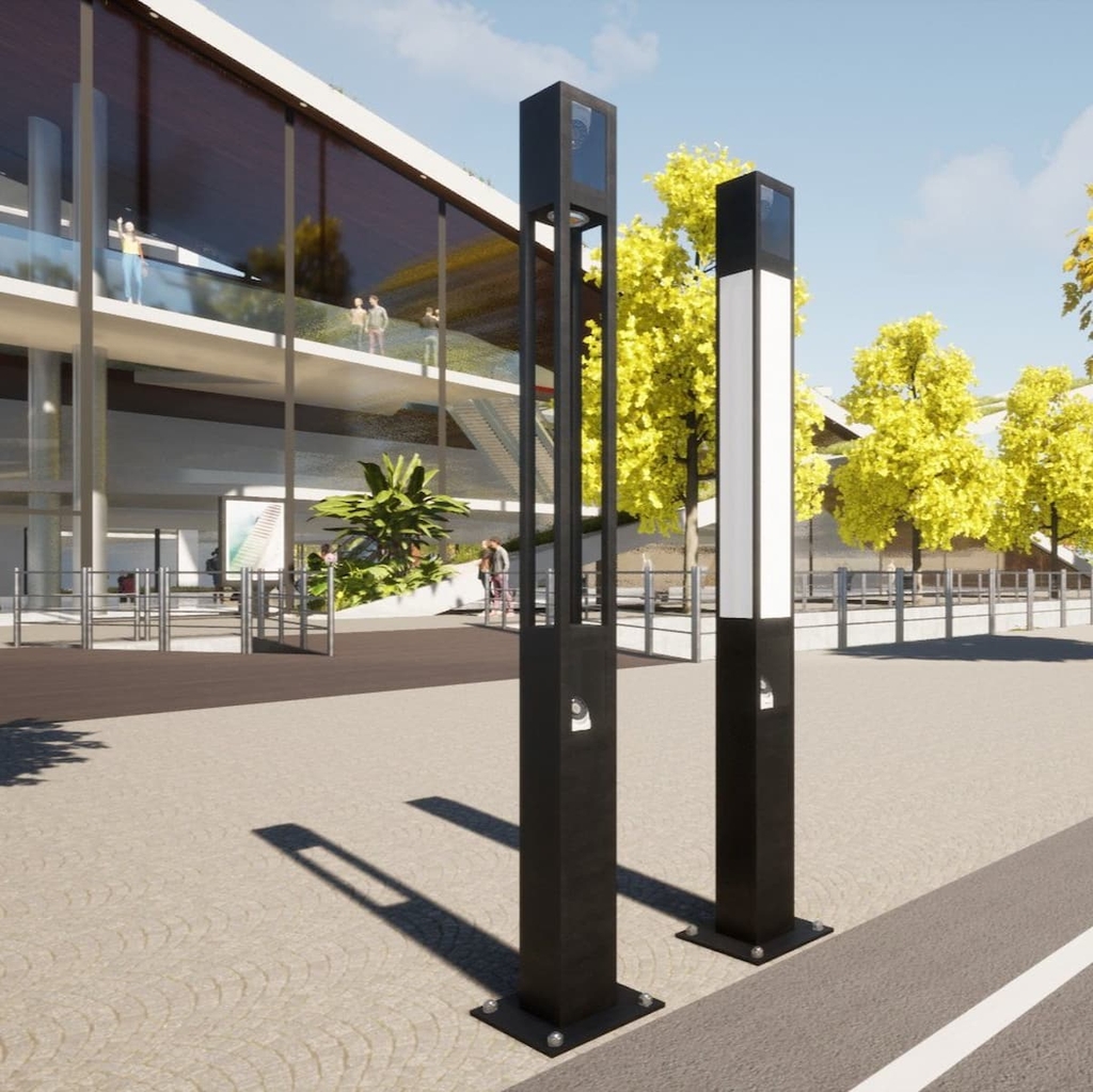 Hôm nay, ZALAA Lighting xin giới thiệu sản phẩm mới cột đèn trang trí và chiếu sáng cảnh quan sân vườn / công viên có tích hợp vị trí lắp đặt camera để giám sát tại Khu đô thị, Cổng ra vào căn hộ Penhouse, Chung cư cao cấp