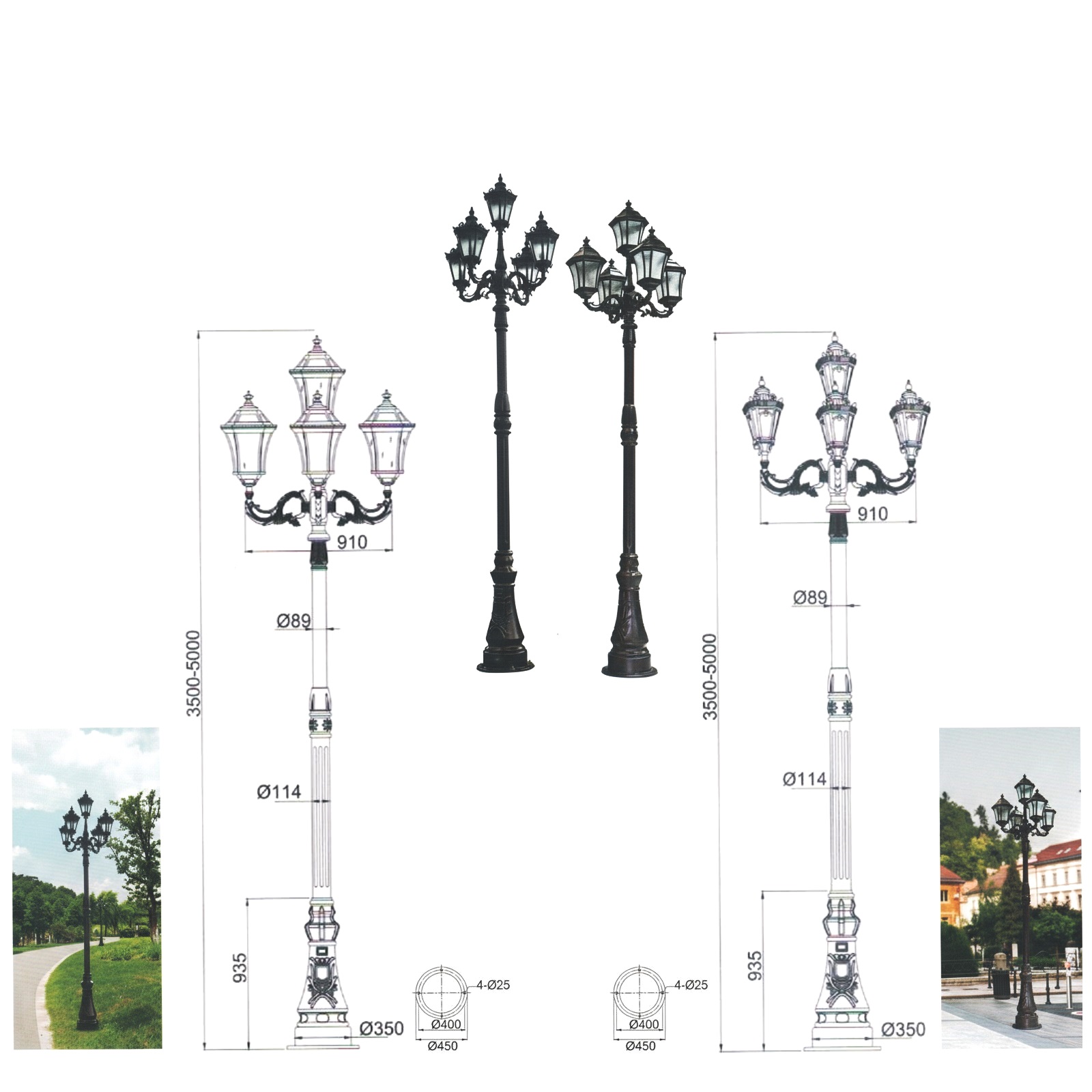 | ZSV-GLP EU005a | Cột đèn 5 bóng hoa văn | 3.5m – 5.0m | 910 mm |