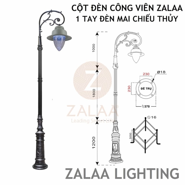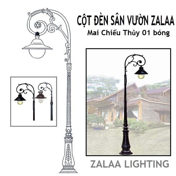 Bạn đang tìm sản phẩm Cột Đèn Trang Trí Và Chiếu Sáng Cảnh Quan Sân Vườn cho hành lang Khu Dân Cư, Công Viên, Sân Vườn ngoài trờ, hợp với cột từ 2.5m - 6m? Hôm nay, ZALAA Lighting giới thiệu các mẫu sản phẩm Trụ Cột Đèn Sân Vườn 1 Bóng Đèn Mai Chiếu Thủy ZCSV-1bong để quý khách tham khảo. Xin mời liên hệ báo giá tốt cho chủ đầu tư.