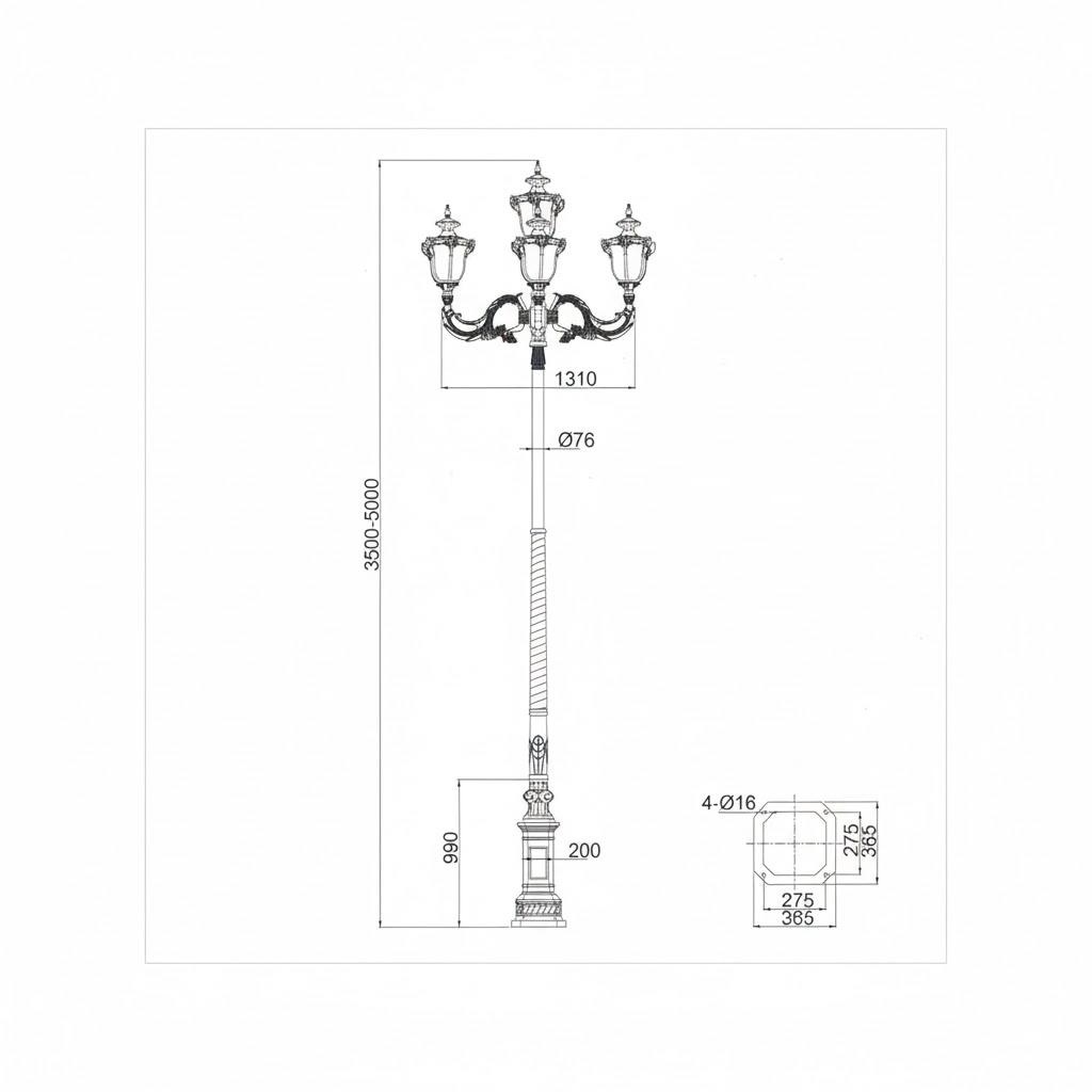 | ZSV-GLP EU006 | Cột đèn 5 bóng hoa văn | 3.5m – 5.0m | 1310 mm |
