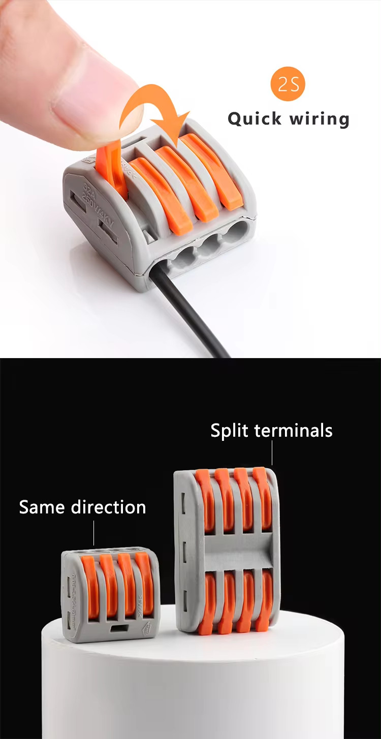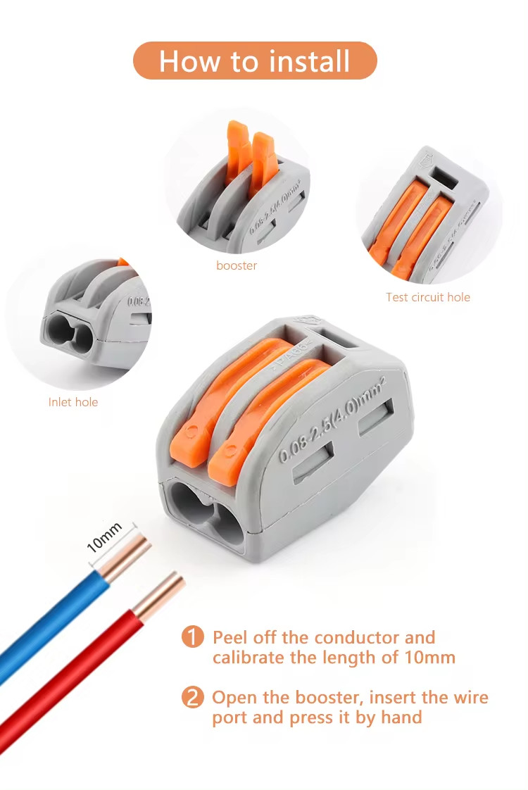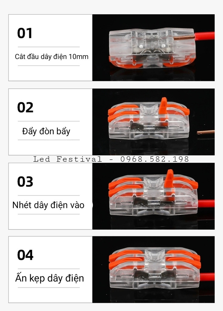 Cút nối dây điện giúp bạn nối các dây điện với nhau trong vòng 3 giây, không cần kìm, không cần băng dính cách điện và việc tháo dây khỏi cút nối khi không cần đến cũng dễ dàng như lúc lắp vào. Hỗ trợ nối cùng lúc từ 2-5 dây điện đồng thời, mối nối đẹp, gọn gàng, an toàn, chống chạm chập điện, cháy nổi trong các hộp âm tường hoặc hộp nổi….