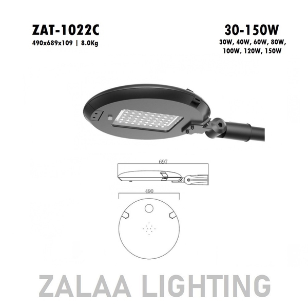 Thông số kỹ thuật Đầu Cột Đèn Chiếu Sáng Công Viên, Khu Đô Thị Mới ZAT-1022C LED 30W-150W, hợp cột 3m-6m: