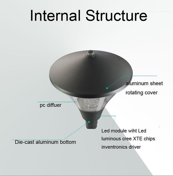 - - Thân đèn LED sân vườn được làm từ hợp kim nhôm cao cấp. Bề mặt của nó được trang bị lớp sơn tĩnh điện màu đen.