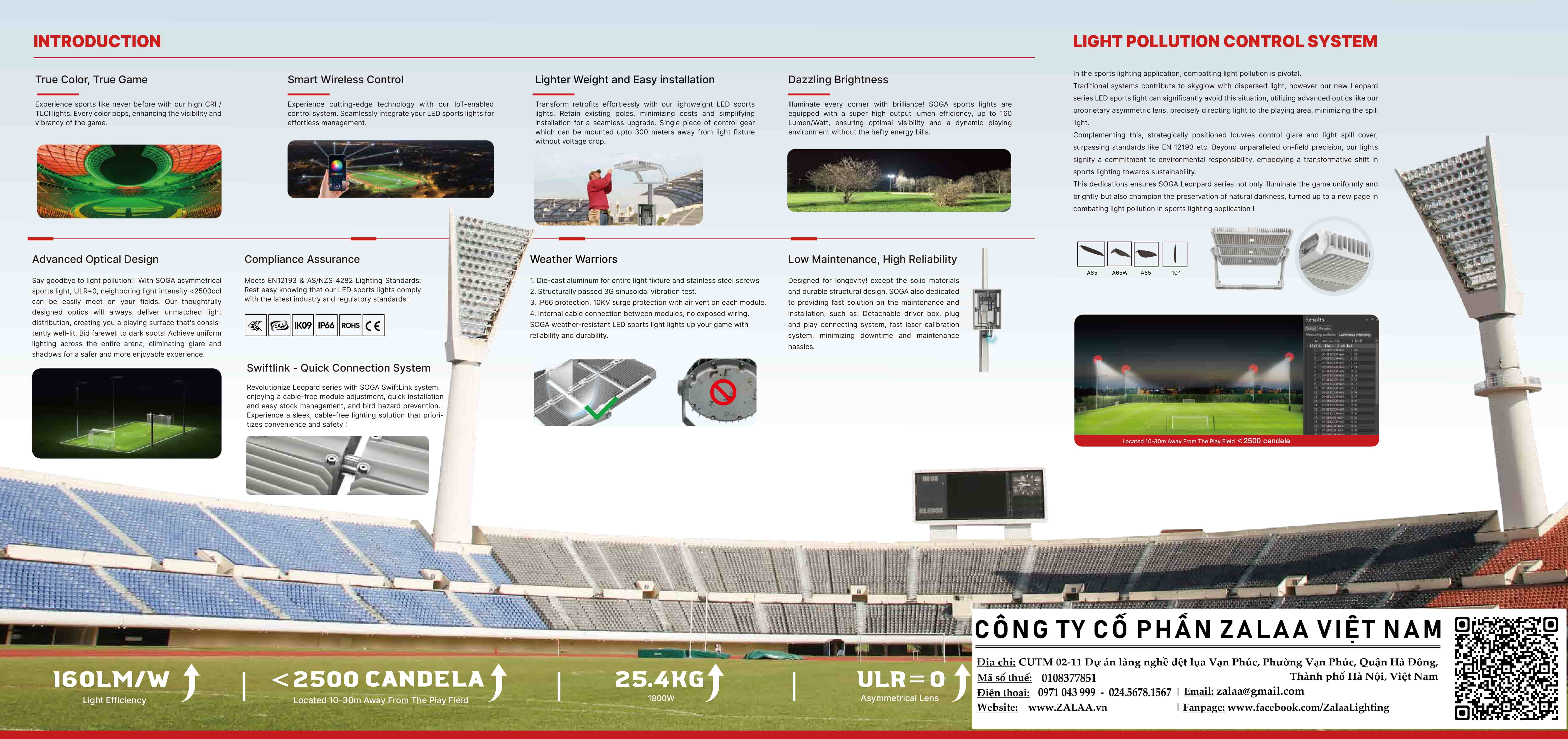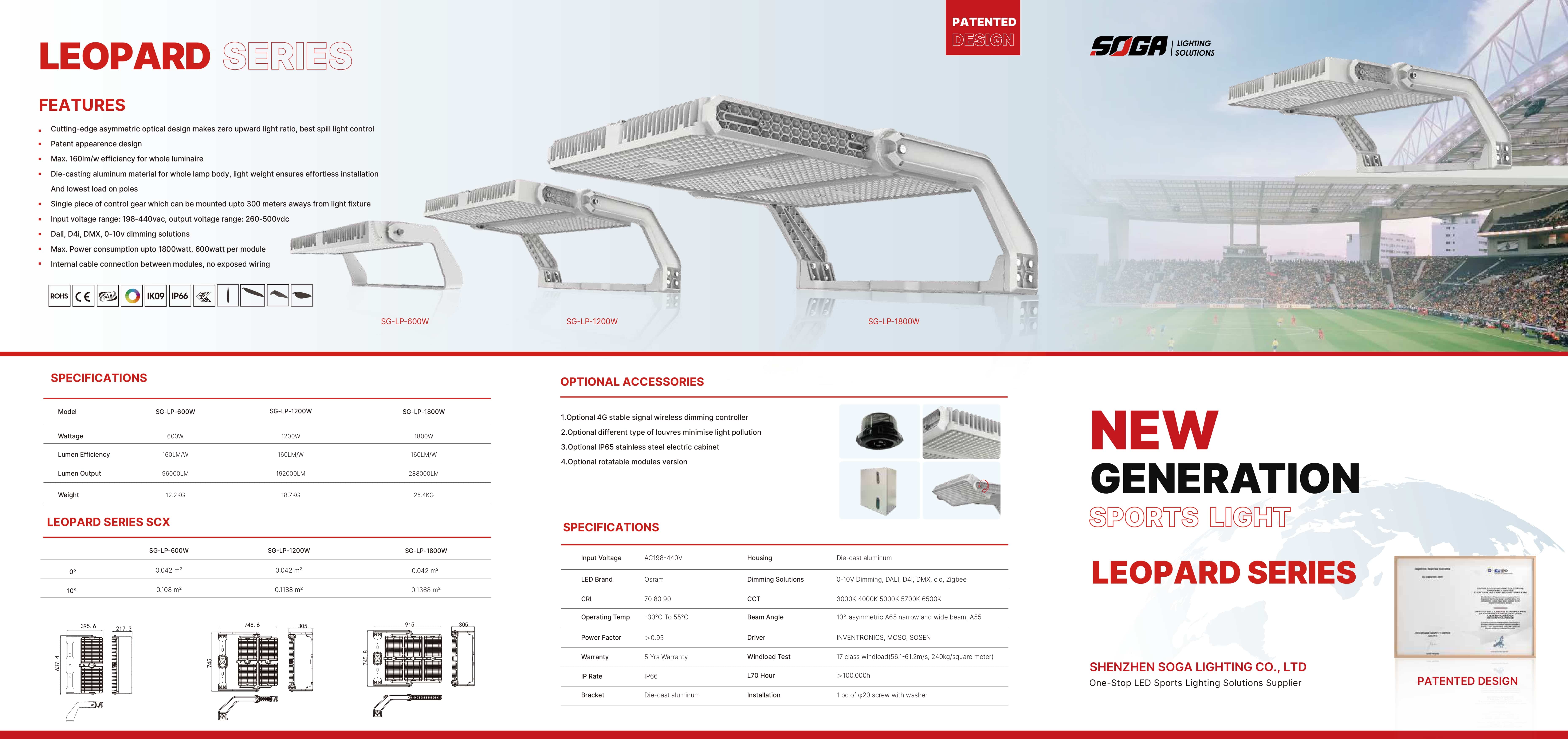 Thông tin chi tiết sản phẩm Đèn Chiếu Sáng Sân Thể Thao Thông Minh ZALAA/SOGA Mới Leopard ZSG-LP 600W, 1200W, 1800W | Zalaa/Soga Smart Lighting