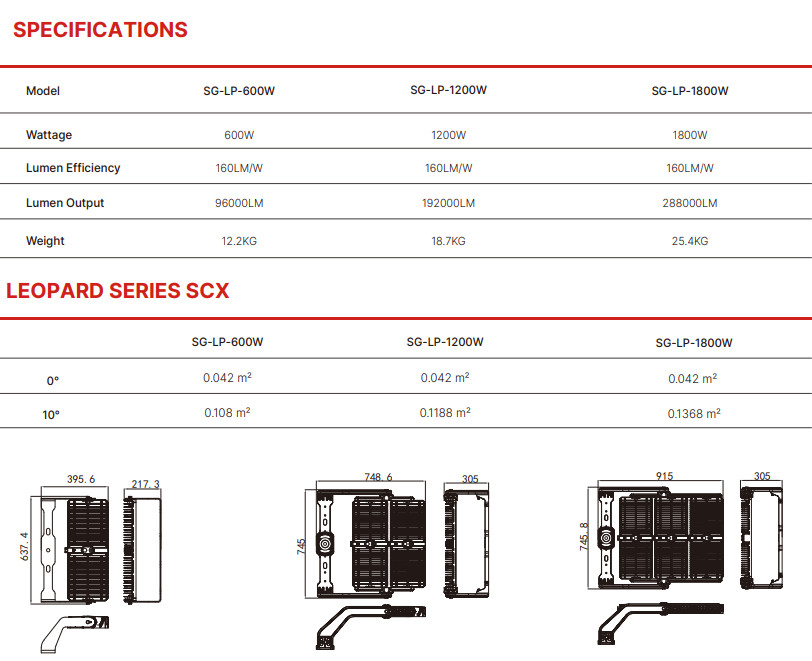 Thông số kỹ thuật Đèn Chiếu Sáng Sân Thể Thao Thông Minh ZALAA/SOGA Mới Leopard ZSG-LP 600W, 1200W, 1800W | Zalaa/Soga Smart Lighting: