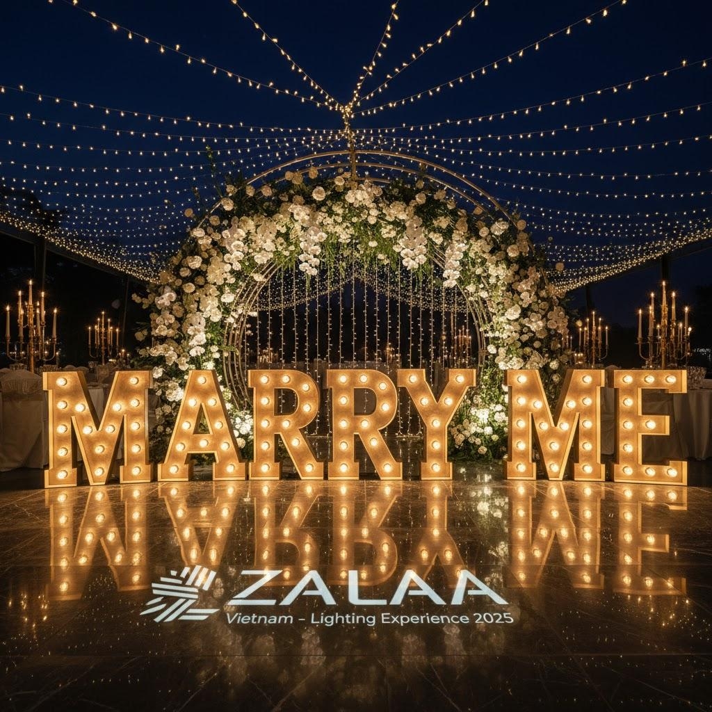 ✅ “Marquee Lights” là dòng đèn chữ kim loại hoặc LED Neon nghệ thuật, thường được sử dụng trong trang trí sự kiện, sân khấu, lễ hội, wedding décor hoặc không gian công cộng. ZALAA Lighting – Nhà cung cấp giải pháp chiếu sáng thông minh hàng đầu Việt Nam – mang đến dòng sản phẩm Đèn Chữ Sự Kiện ZALAA Marquee Lights, được thiết kế tinh tế, dễ lắp đặt, bền vững và mang đậm dấu ấn nghệ thuật.