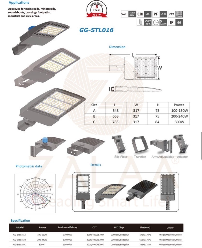 Thông số kỹ thuật đèn đường LED OEM GG-STL016 ZALAA