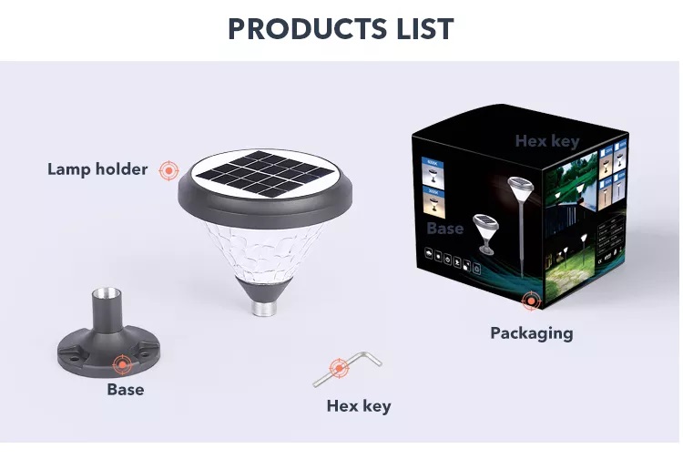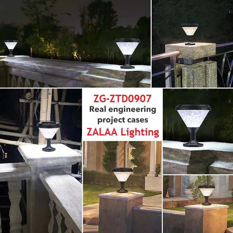 ZG-ZTD9007 là đèn trang trí trụ cột trên cầu, cổng, hàng rào sân vườn ngoài trời có kiểu dáng vuông đầu, Sử dụng năng lượng mặt trời để chiếu sáng dùng cho các không gian như cảnh quan sân vườn, biệt thự, công viên, vui chơi cộng đồng, vv...Công Suất Tấm Pin/Đèn 5V/2W, Pin 3.2/2000mAh. Sản phẩm do ZALAA Solar Garden nhập khẩu và phân phối tại Việt Nam.