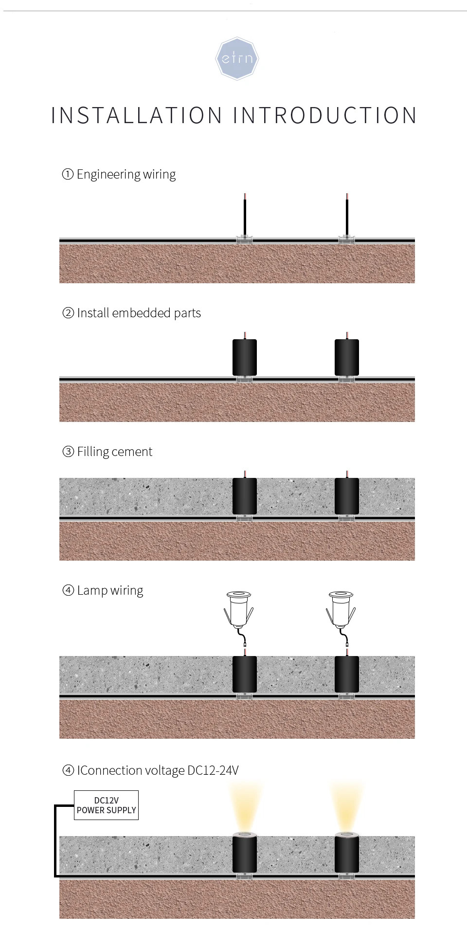 - 4. Được cung cấp bởi điện áp thấp DC12V/24V, an toàn hơn khi sử dụng trong môi trường ngoài trời. (KHÔNG BAO GỒM máy biến áp)