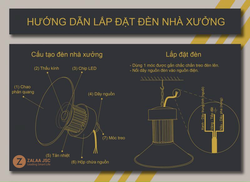 6.5 Hình ảnh cấu tạo và cách lắp đặt đèn LED nhà xưởng: