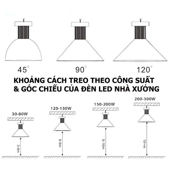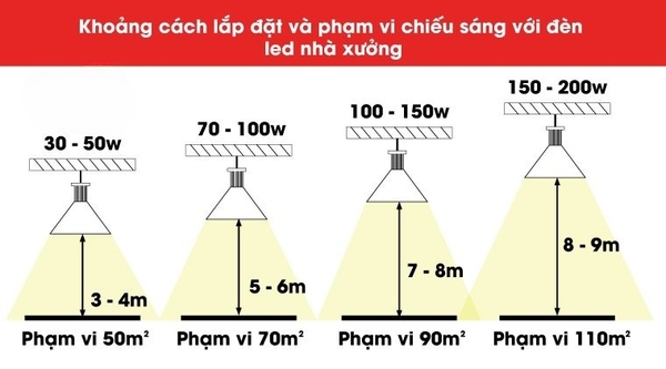 6. Cách tính chiều cao và lắp đặt đèn LED nhà xưởng 100W