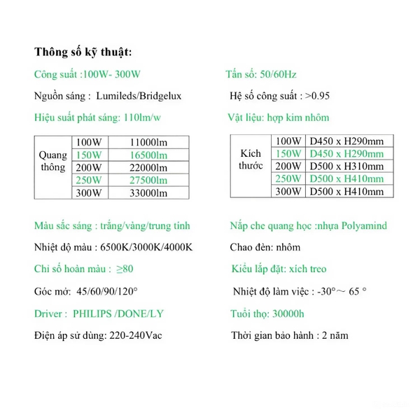 - Bền bỉ: Chất liệu hợp kim nhôm giúp đèn tản nhiệt tốt, chịu được điều kiện khắc nghiệt của môi trường công nghiệp.