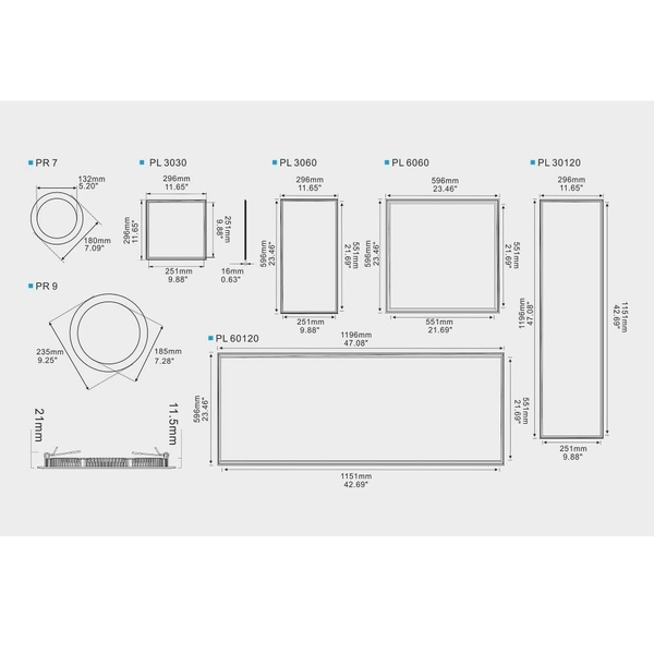 - - Kiểu dáng đèn: không tai và có tai kích thước vuông 300x300, 600x600, chữ nhật 300x600, 300x1200, 600x1200