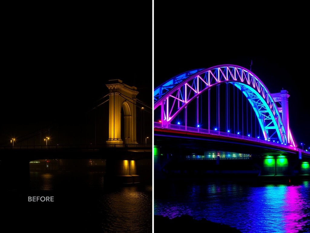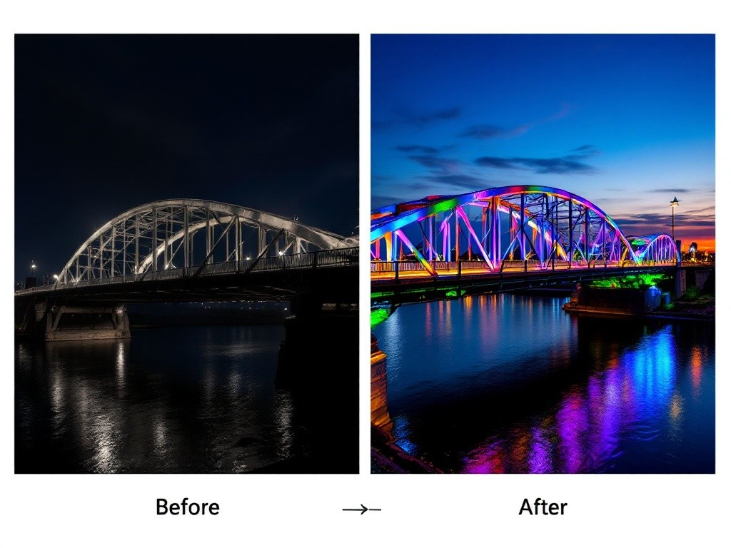 - Hiệu quả: Tăng sự thu hút cho cầu vào ban đêm, đặc biệt trong các dịp lễ hội hoặc sự kiện lớn.