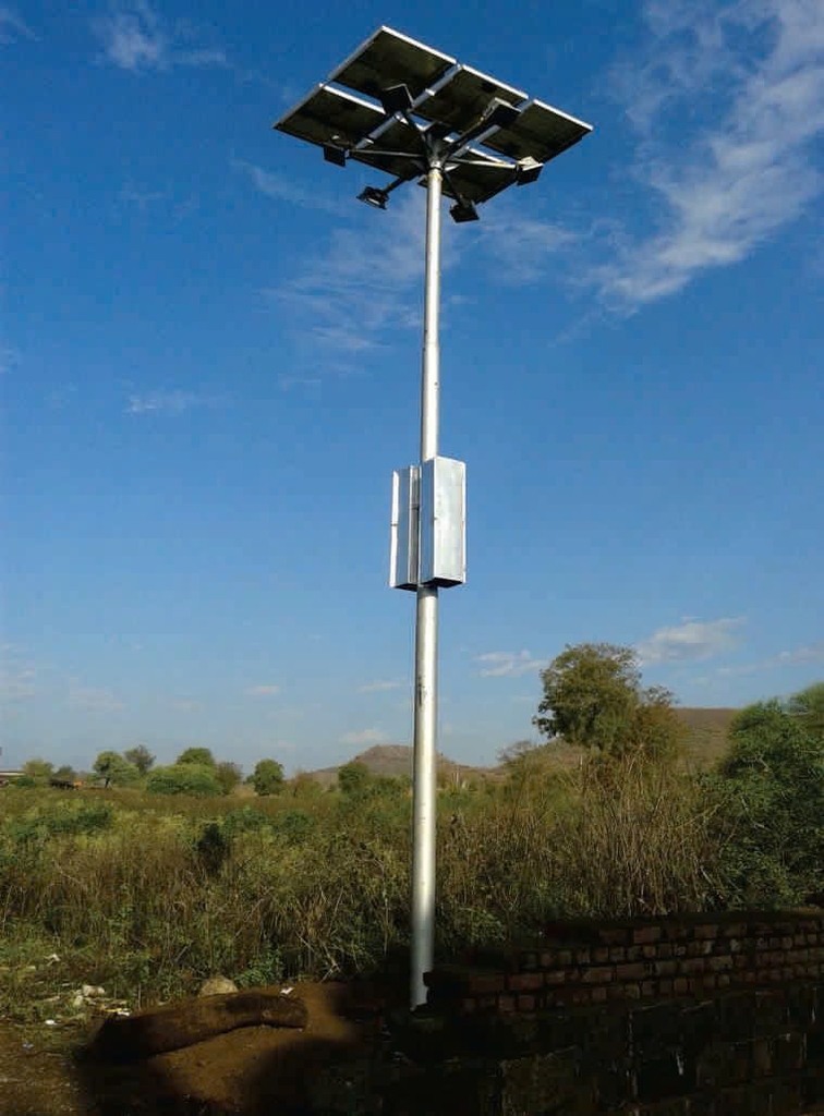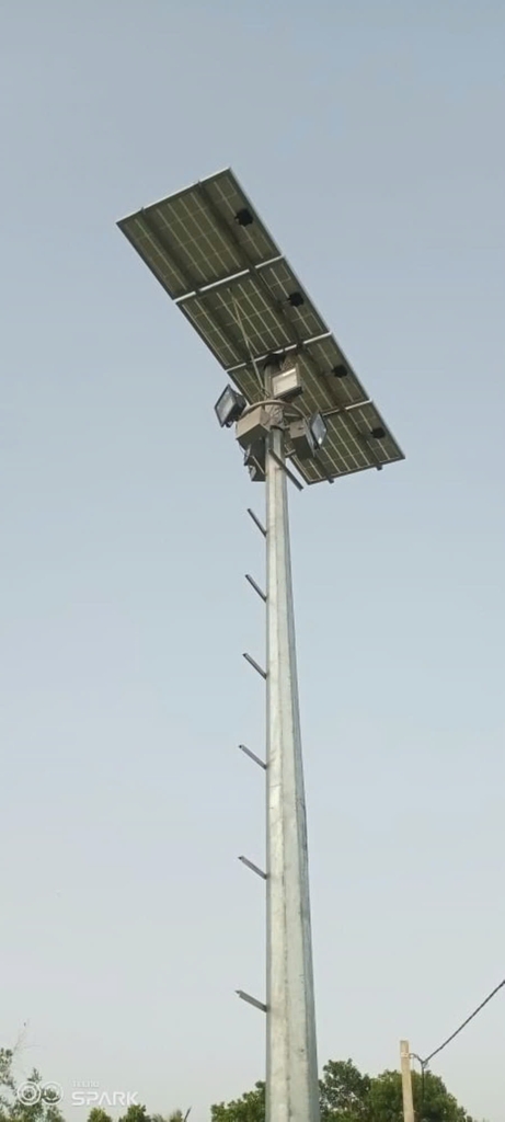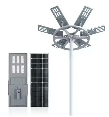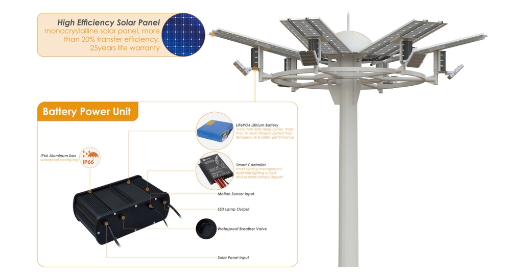 - Tấm pin năng lượng mặt trời hiệu suất cao : Được tích hợp trên đỉnh cột hoặc giàn đèn, có khả năng hấp thụ tối đa ánh sáng và chuyển hóa thành năng lượng.