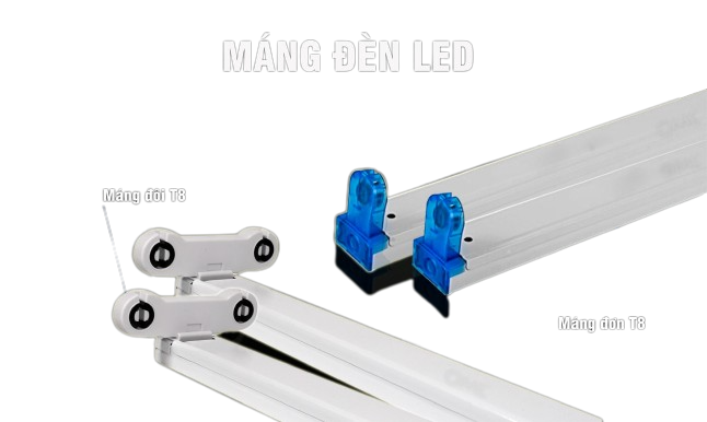 A, Máng Đèn LED là bộ phận được sử dụng để nâng đỡ, bảo vệ bóng đèn. Đây cũng là thiết bị trung gian để đưa nguồn điện giúp đèn led thực hiện nhiệm vụ chiếu sáng của mình. Những loại đèn tuýp led có thiết kế ống bóng dài nên thường sử dụng kèm máng để đảm bảo sự an toàn. Thông thường loại bóng được ưa chuộng hơn cả là bóng tuýp led loại T5 hoặc T8.