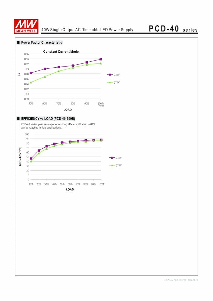 Meanwell PCD 40 SERIES: ( Click xem thông số kỹ thuật từ hãng tại đây)