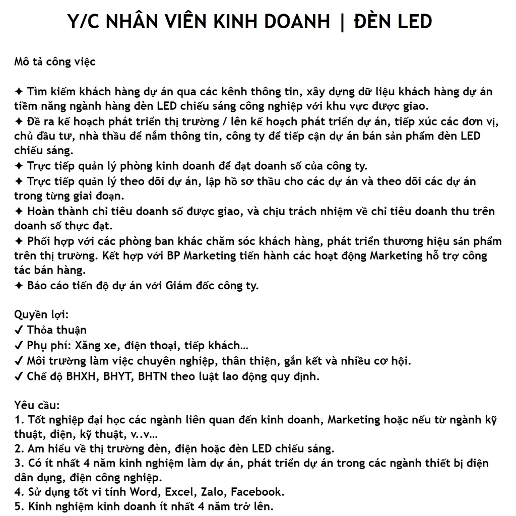 🤝Thông Tin Tuyển Dụng | ZALAA Lighting