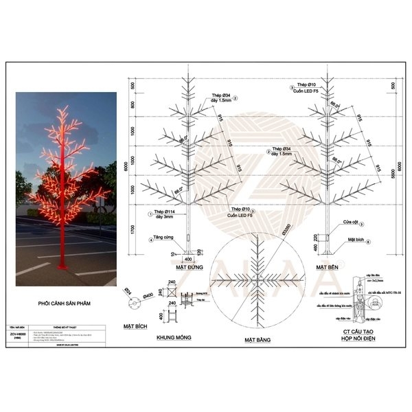 Bản vẽ Đèn LED Cây Thông ZCV-H6000