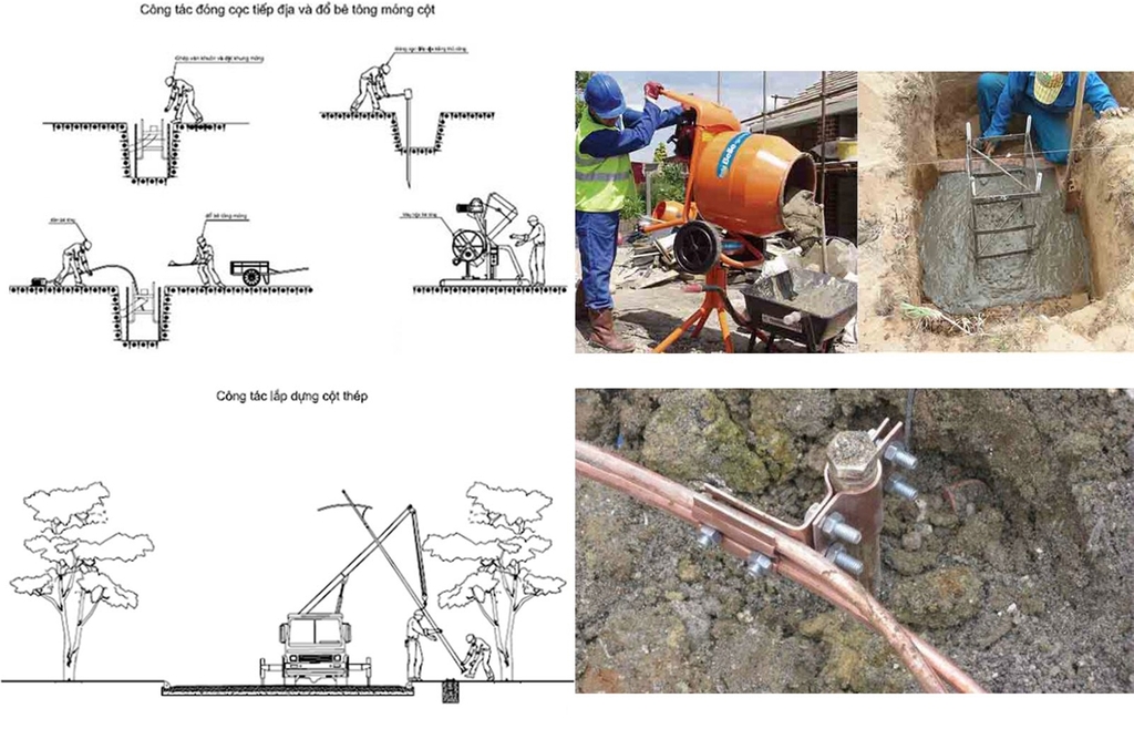 Hình ảnh 9: Thi công đổ bê tông khung móng cột đèn sân vườn, cột đèn cao áp