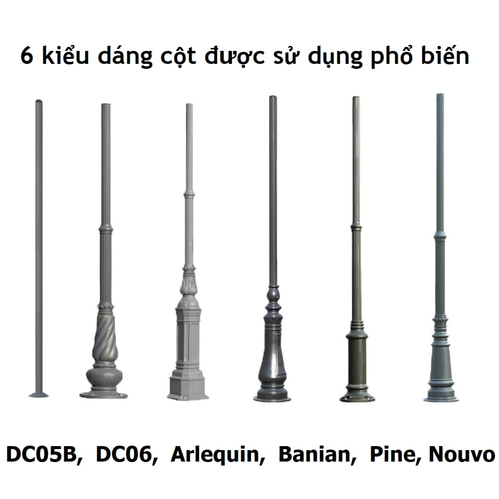 Thân cột thiết kế dạng ống với các kiểu dáng khác nhau.